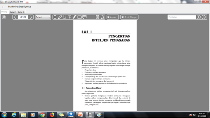 Mengikuti perkembangangan teknologi, Perpustakaan Politeknik APP Jakarta memiliki perpustakaan digital. Perpustakaan dengan koleksi buku dalam bentuk atau format digital yang dapat diakses dengan komputer maupun smartphone. e-Library Politeknik APP dapat di unduh secara gratis di Play Store, search “e-Library Politeknik APP” untuk mengaksesnya melalui smartphone. Untuk pengguna laptop atau komputer juga dapat ketik di kolom url : https://kubuku.id/download/e-library-politeknik-app/.